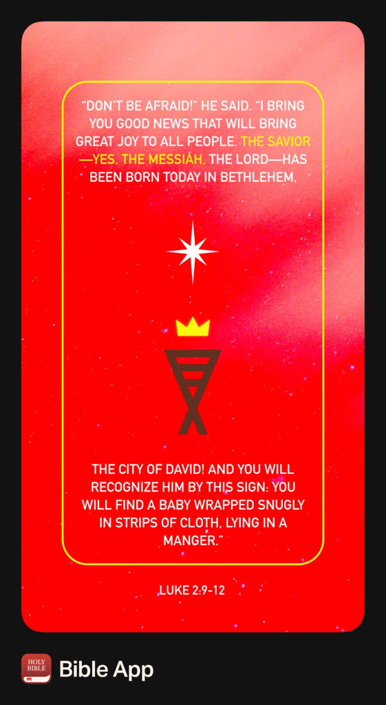 “but the angel reassured them. “Don’t be afraid!” he said. “I bring you good news that will bring great joy to all people.”