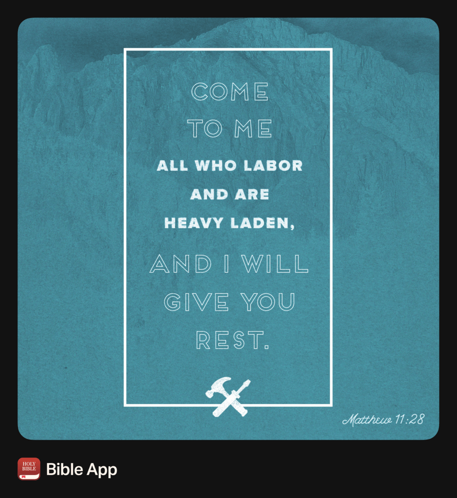 “Then Jesus said, “Come to me, all of you who are weary and carry heavy burdens, and I will give you rest.”